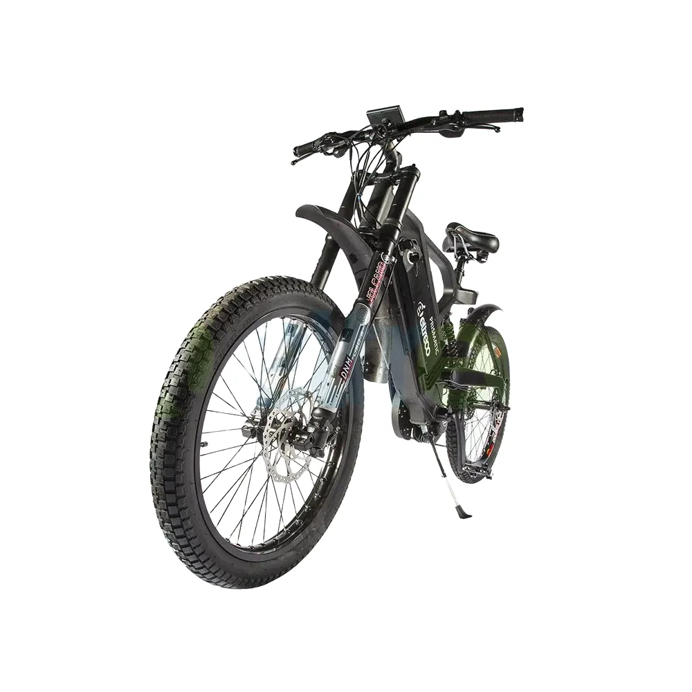 Двухподвесная модель оборудована широкими колесами с надежными ободами и крупными протекторами для катания по мокрому песку и грязи, ямам и ухабам. Широкое седло имеет воздухопроницаемую поверхность для большего комфорта при длительных поездках.